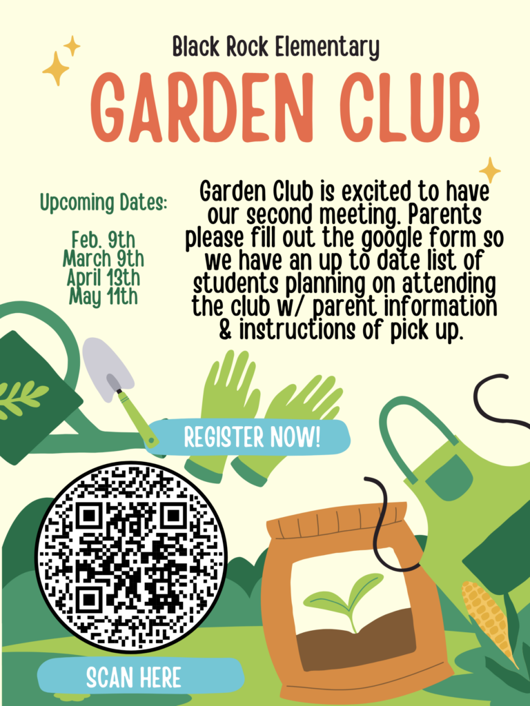 Garden Club is excited to have our second meeting. Parents please fill out the google form so we have an up to date list of students planning on attending the club with parent information and instructions of pick up. Please either use this link or sign the QR code to sign up.